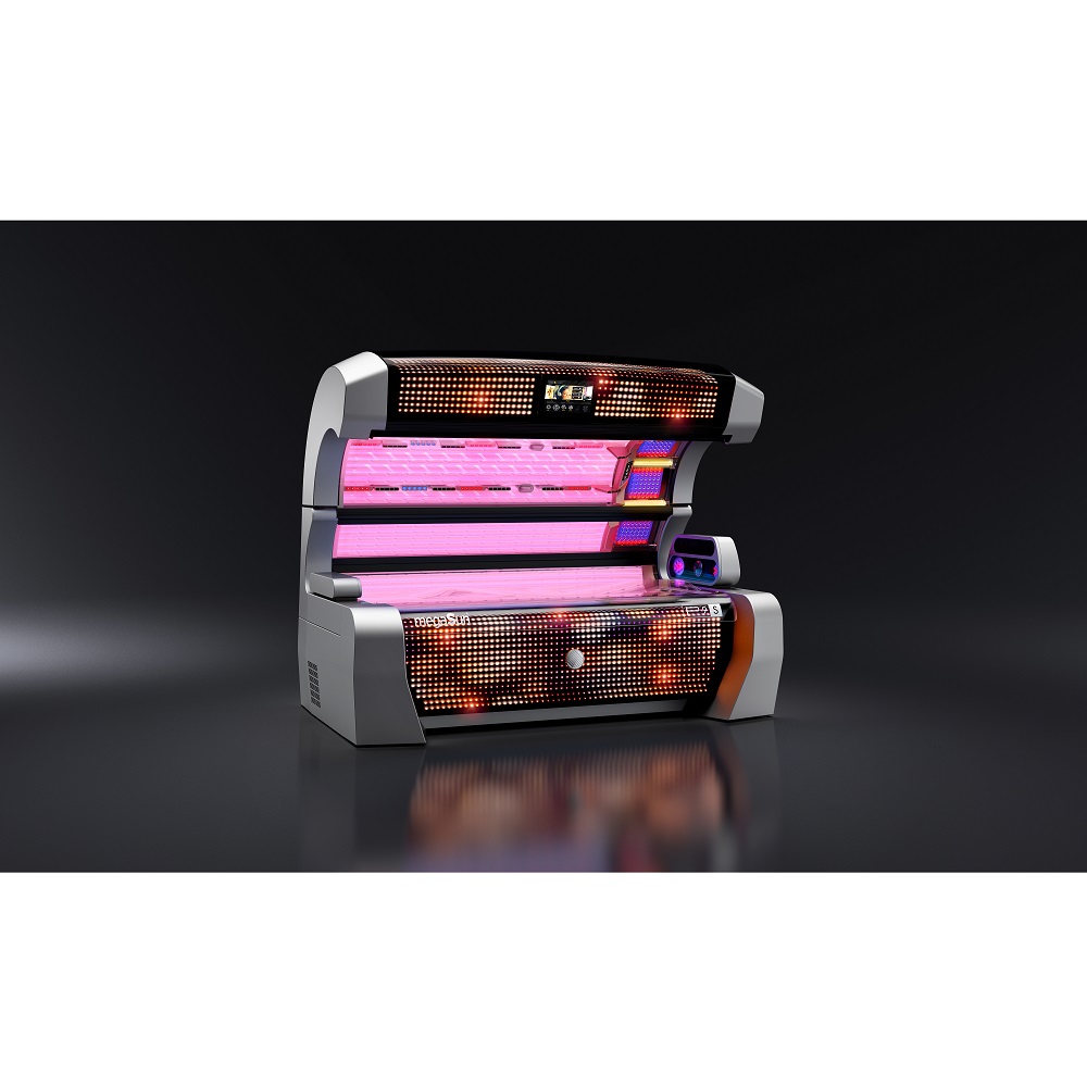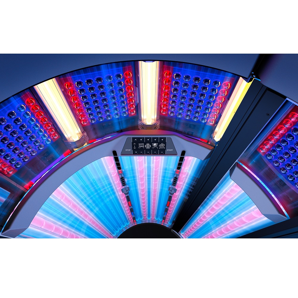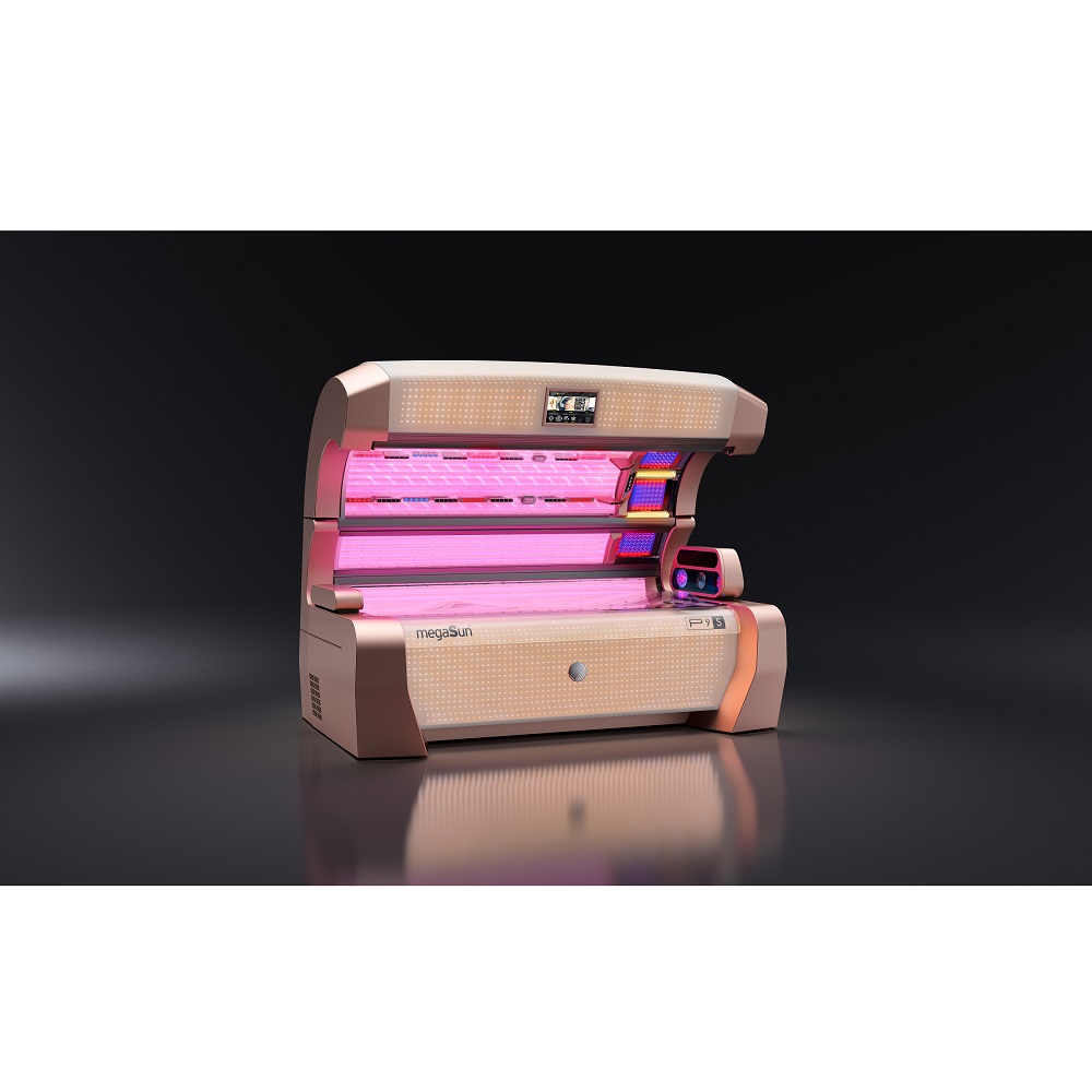 P9S novatoriskā uz LED balstītā SunSphere sistēma novērš šo nevēlamo infrasarkano starojumu un izmanto tikai vēlamos viļņu garumus sauļošanās laikā. Viendabīgi sadalīts caur asfēriskām stikla lēcām. Zilās UVA gaismas diodes garantē izcilu tiešo pigmentāciju uzreiz redzamam iedegumam. Sarkanās skaistuma gaismas diodes nodrošina ādas kopšanu sauļošanās laikā. Un dzeltenās UVB īpašās lampas uzkrāj pigmentus un D vitamīnu.