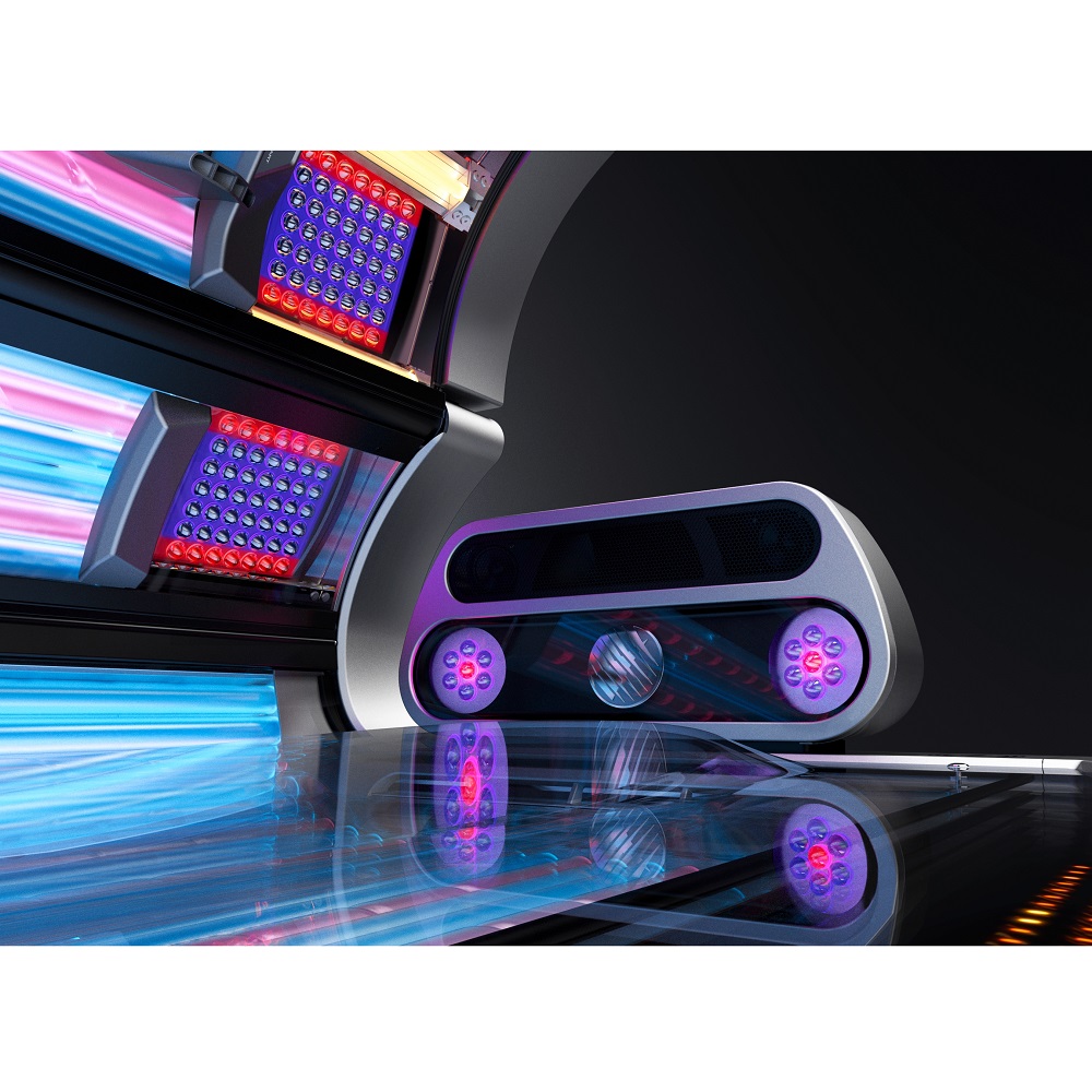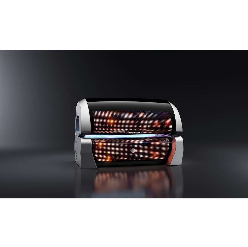 Pārsteidzoša optika: solārija dizains leģendārā Porsche 911 pēdās. Ferdinanda Aleksandra Poršes iecerētā dizaina ikona joprojām fascinē cilvēkus visā pasaulē līdz pat šai dienai. Tādējādi Studio F. A. Porsche bija ideāls kandidāts mūsu ambiciozajam P9 dizaina projektam. Rezultāts: unikāls dizains, kas valdzina jūsu klientus. “Magic Silver” šasijas krāsa aizrauj ar dažādām atlasāmām gaismas šovu programmām.