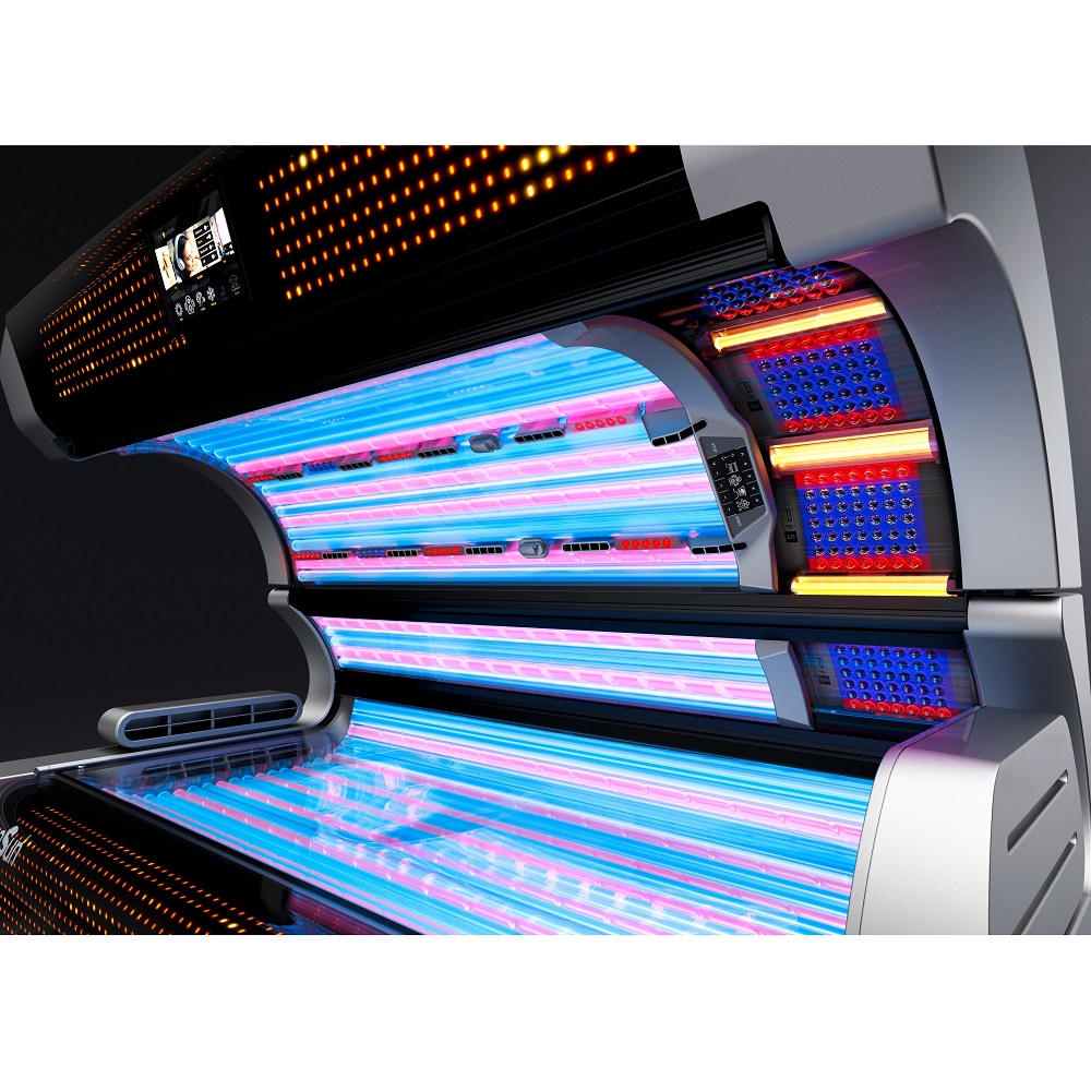 Ideāla spektrālā kombinācija nepārspējamai sauļošanās pieredzei. Turklāt jaunā SunSphere sistēma piedāvā nemainīgi augstu LED jaudu, padara augstspiediena spuldžu nomaiņu nevajadzīgu un krasi samazina jūsu enerģijas patēriņu.